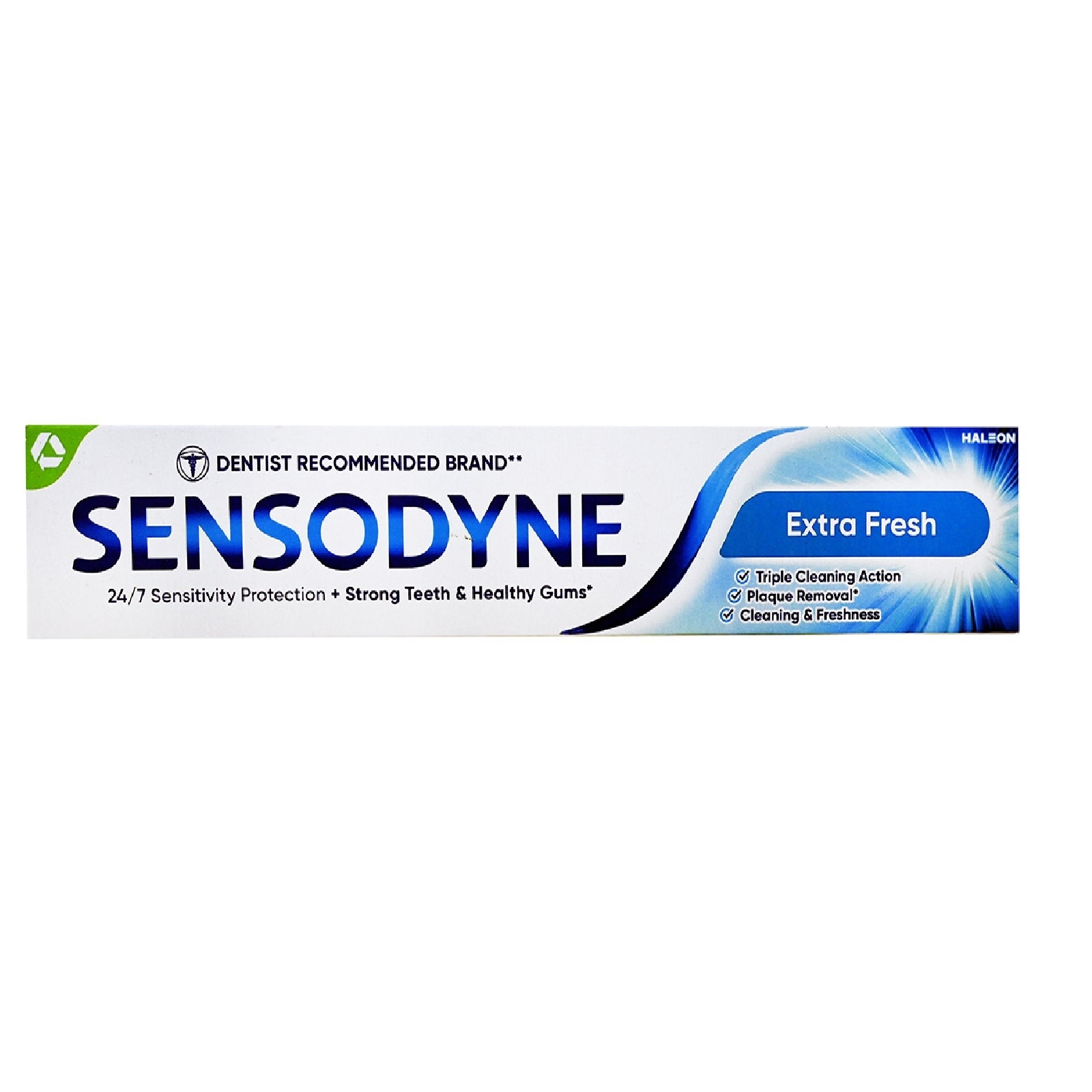 Η Sensodyne Extra Fresh είναι μια οδοντόκρεμα για καθημερινή χρήση, ειδικά σχεδιασμένη για να παρέχει 24ωρη ανακούφιση από την ευαισθησία των δοντιών. Ανακούφιση από την ευαισθησία Προστασία μεγάλης διάρκειας από την ευαισθησία Προστασία από την τερηδόνα Απομάκρυνση της οδοντικής πλάκας