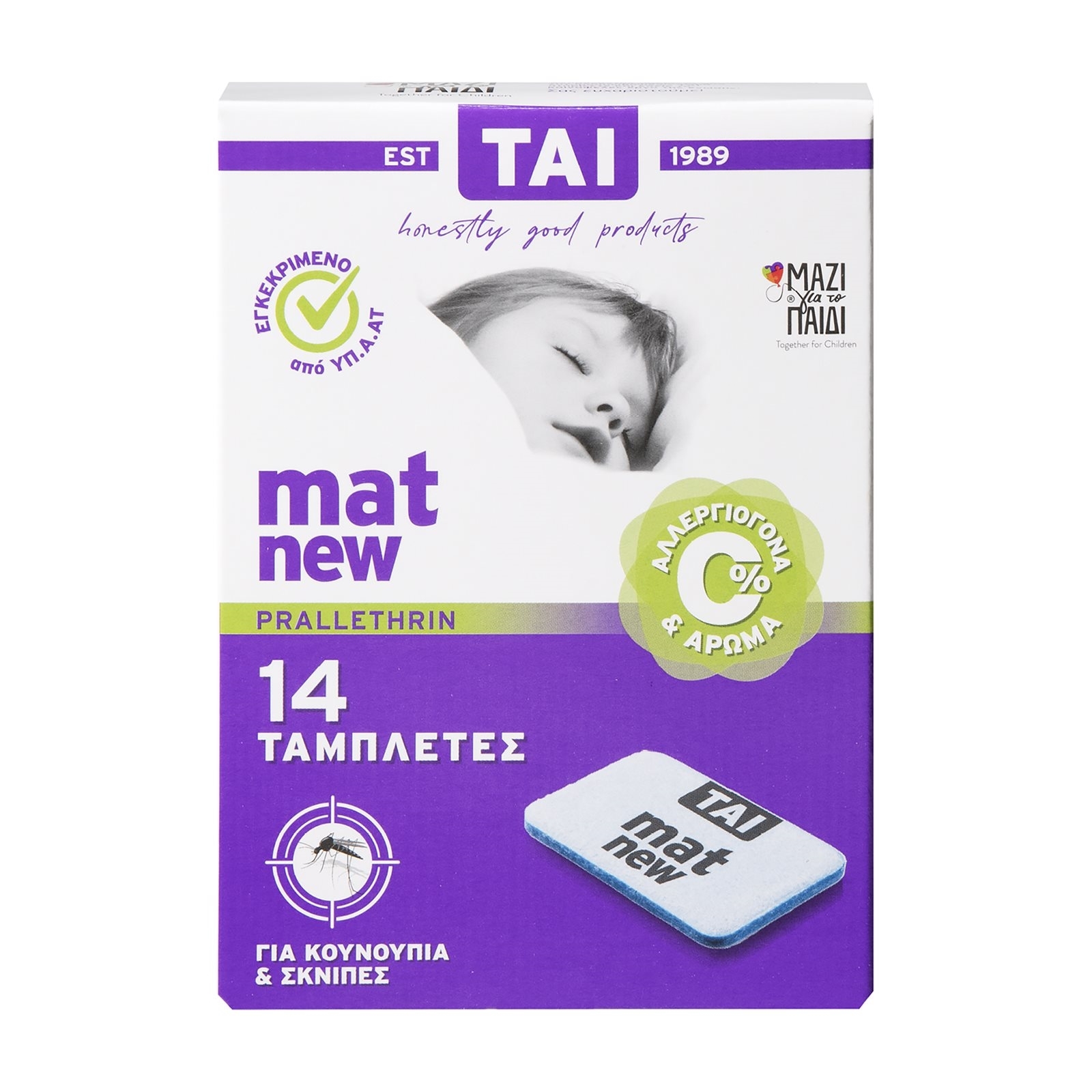 Η νέα ολοκληρωμένη σειρά εντομοκτόνων προϊόντων ΤΑΙ new περιέχει την σύγχρονη δραστική ύλη PRALLETHRIN. Τα προϊόντα μας παρέχουν αποτελεσματική προστασία από τα κουνούπια καθ’ όλη τη διάρκεια του έτους και κυρίως κατά τους καλοκαιρινούς μήνες.