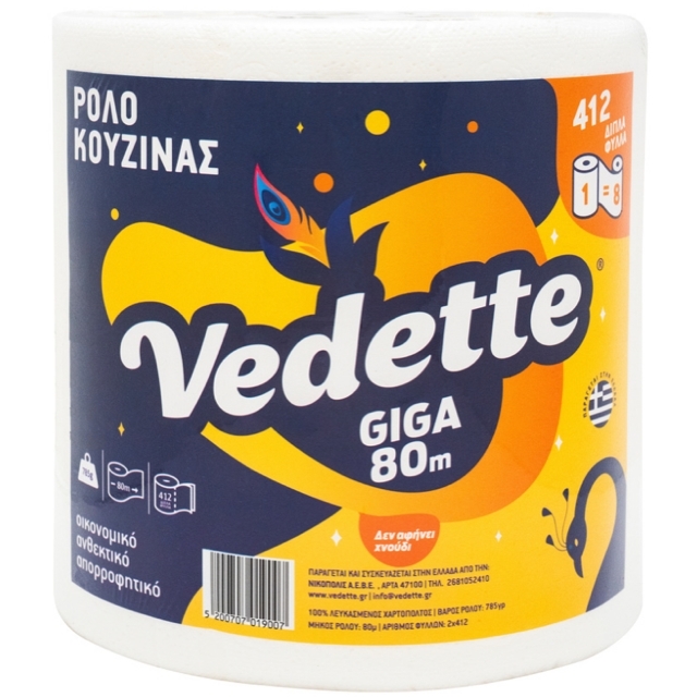 Vedette 10 Ρολλά Υγείας 120gr 25m 200 Τριπλά Φύλλα